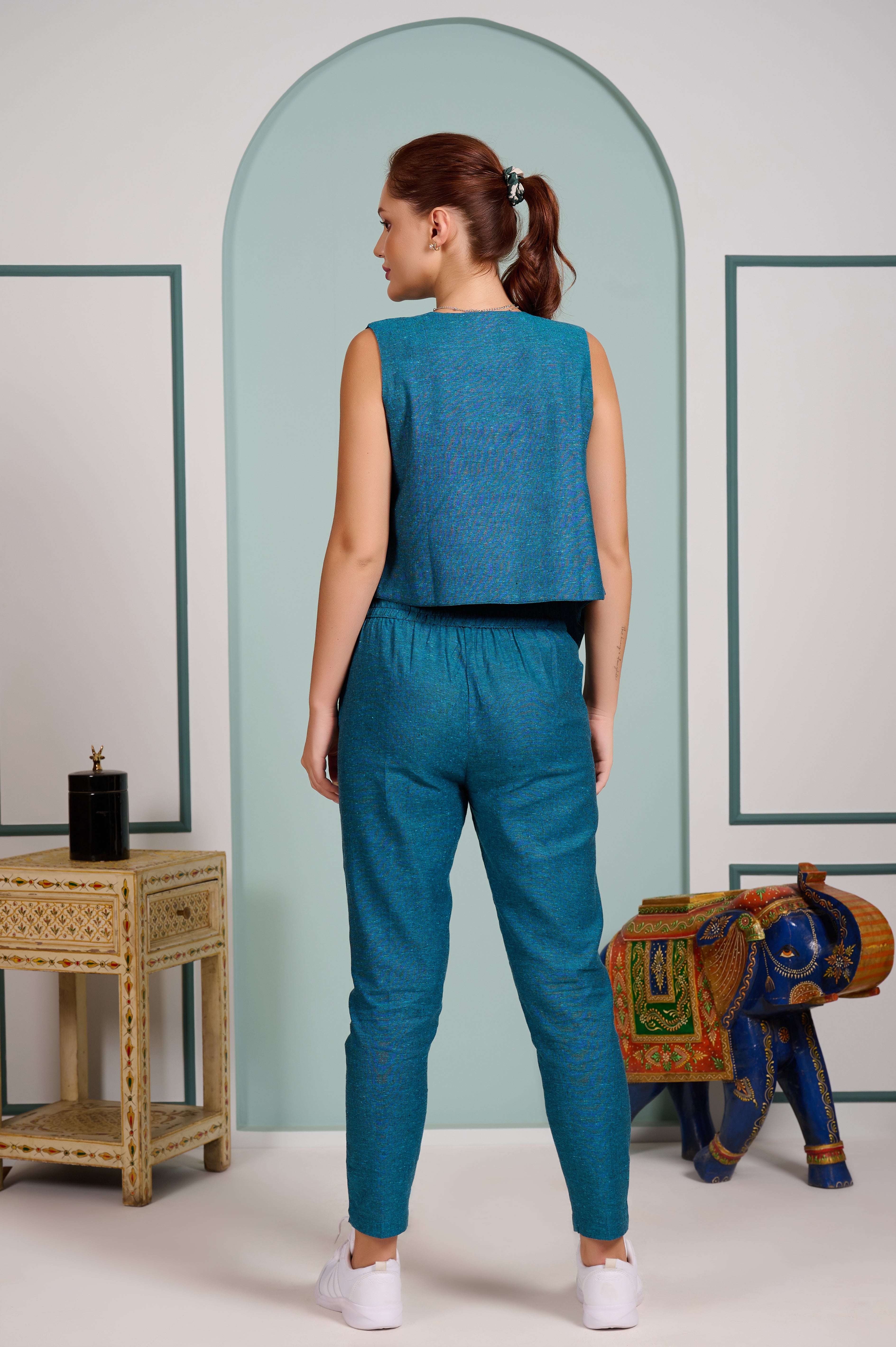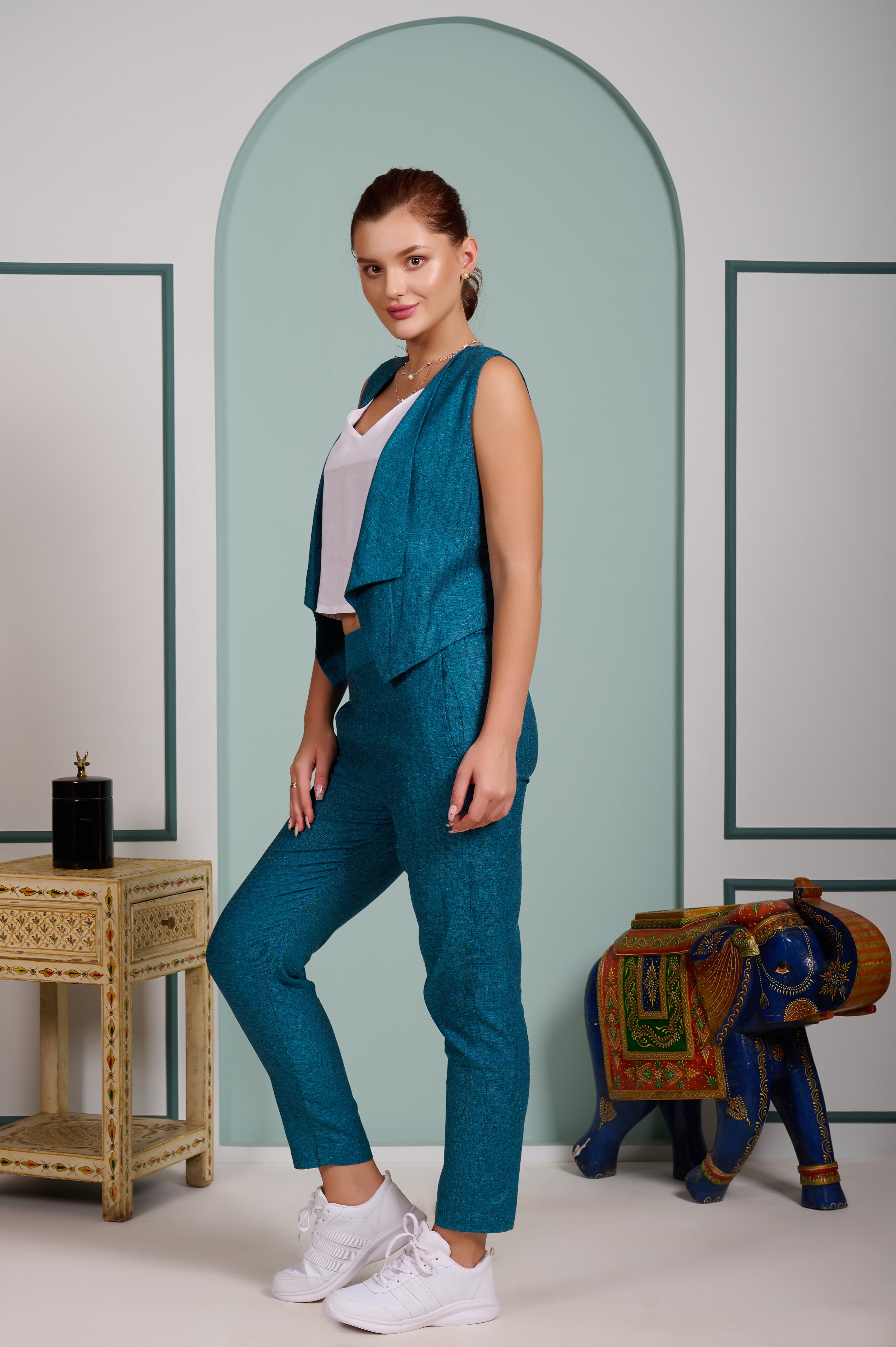 Teal Blue 3 piece cord set Pant with Vest and inner top