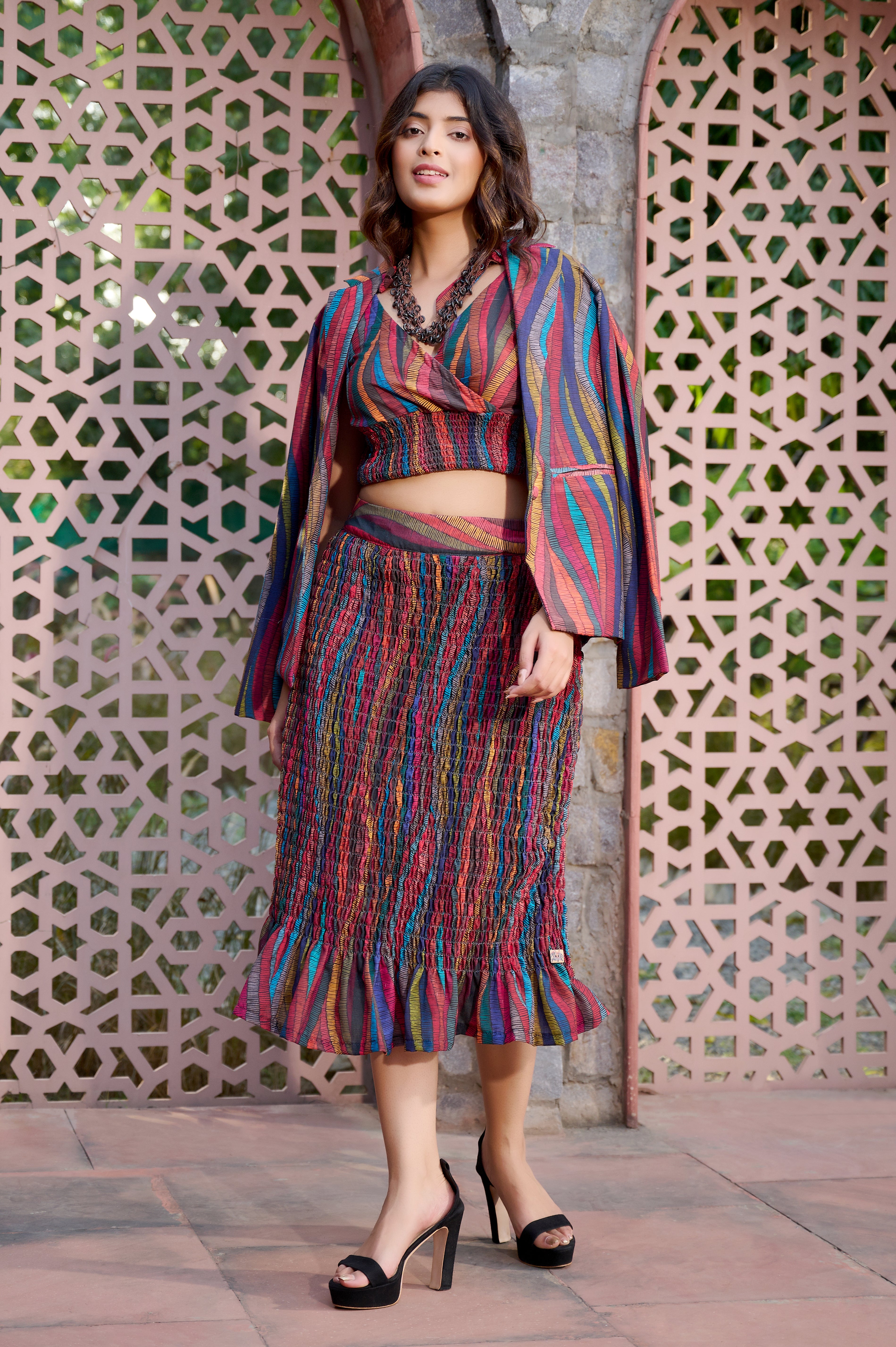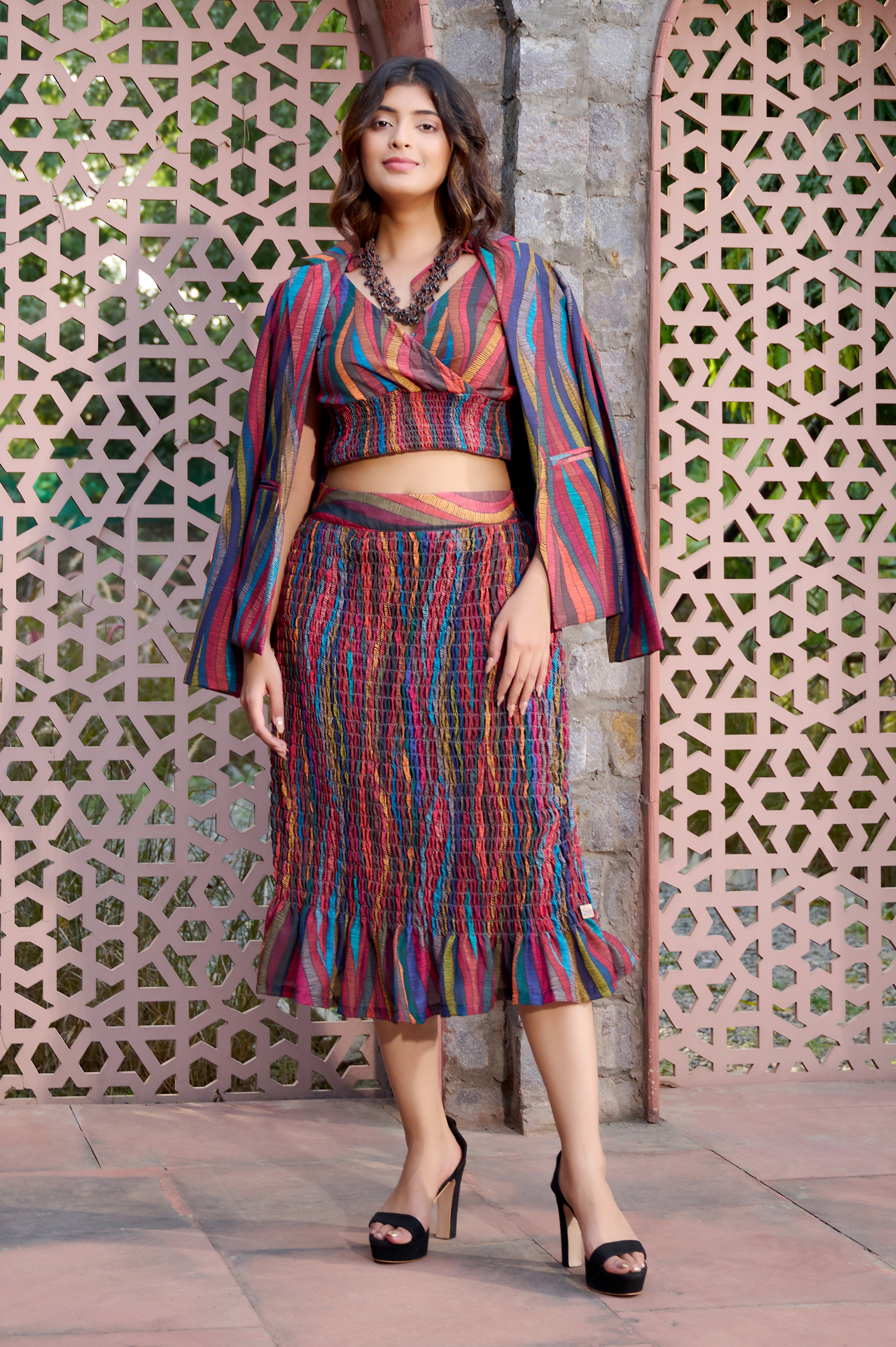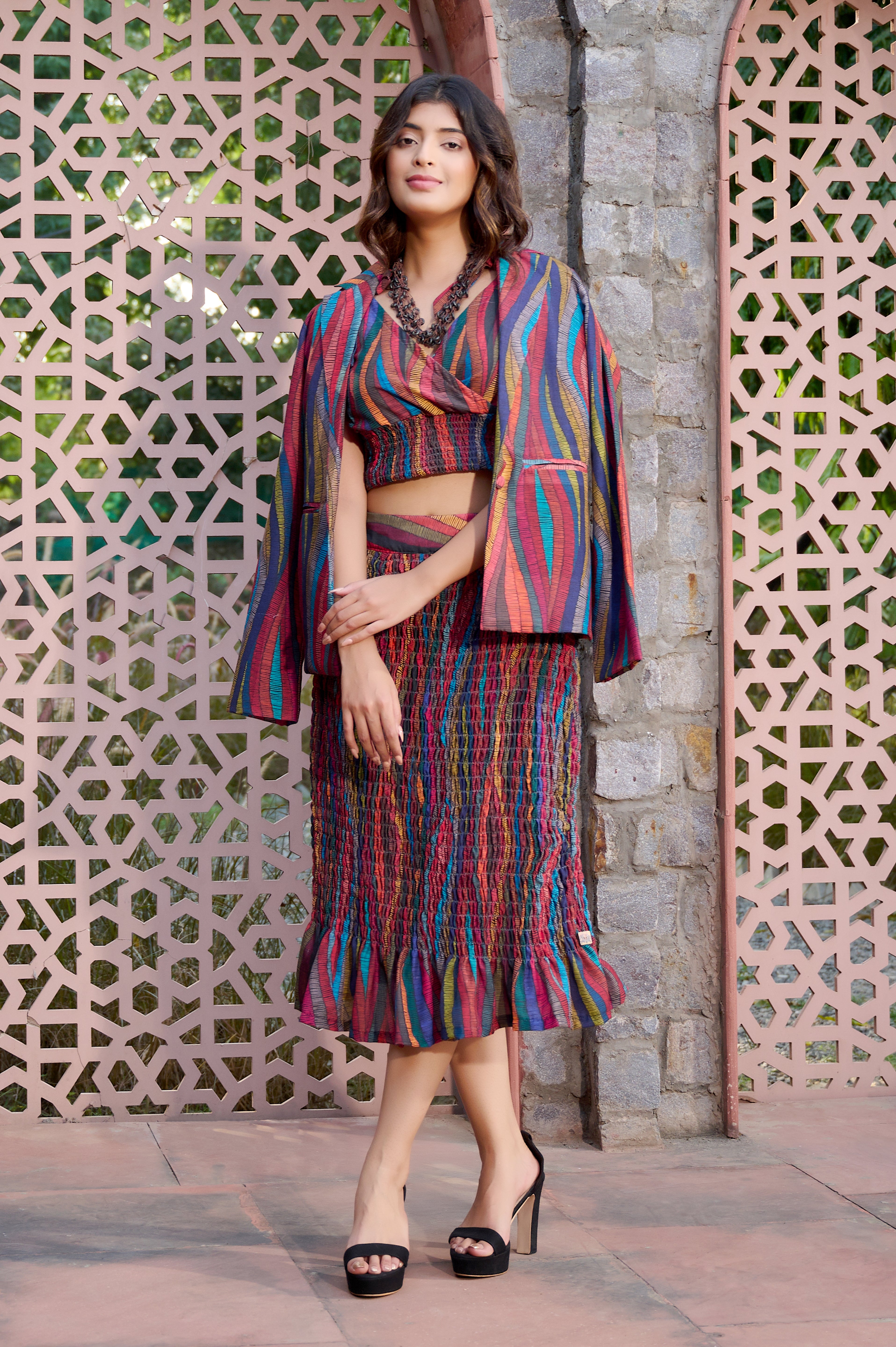 Elasticated Skirt and Top with Blazer Co-ord Set in Cotton Blend fabric