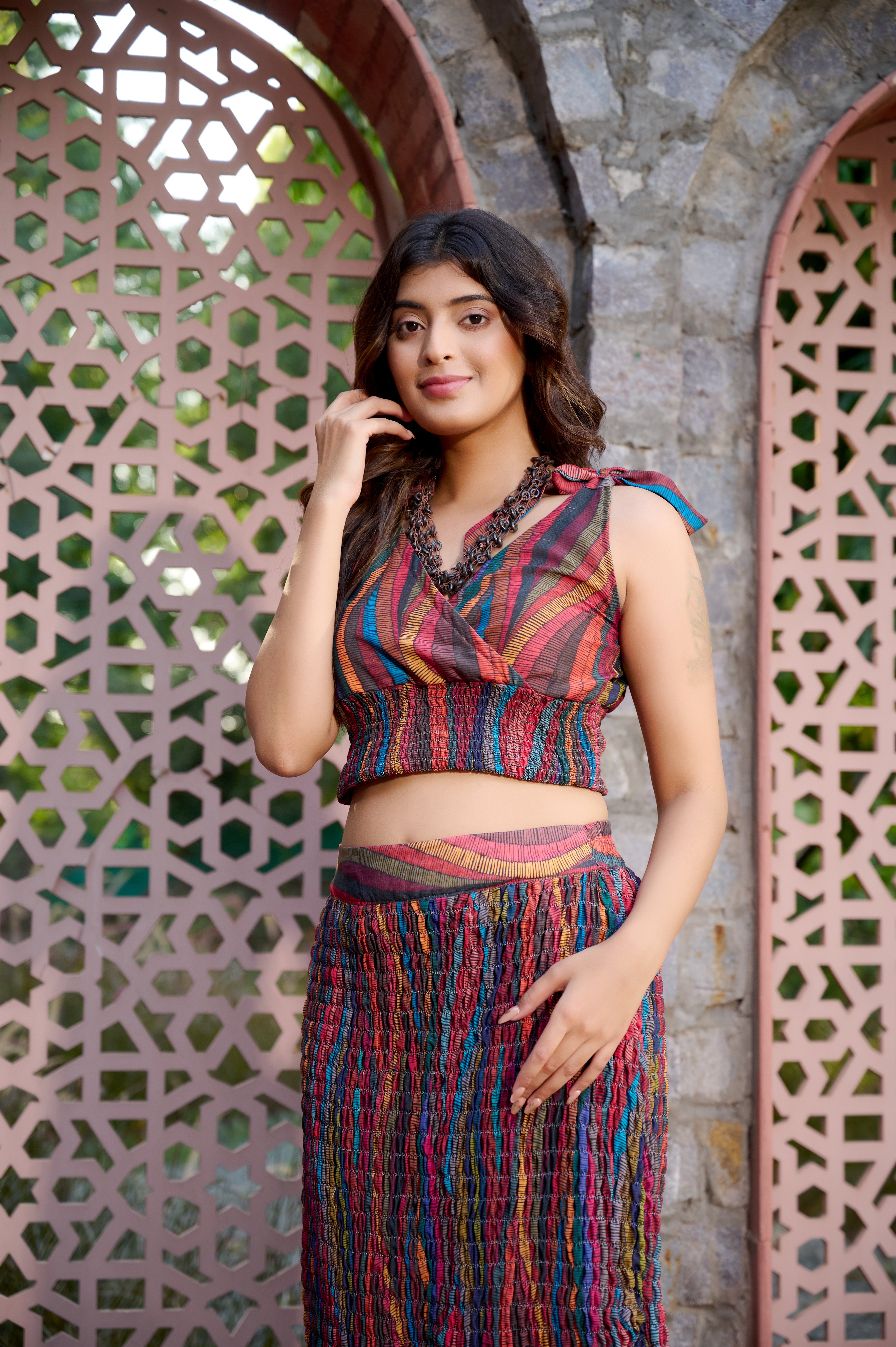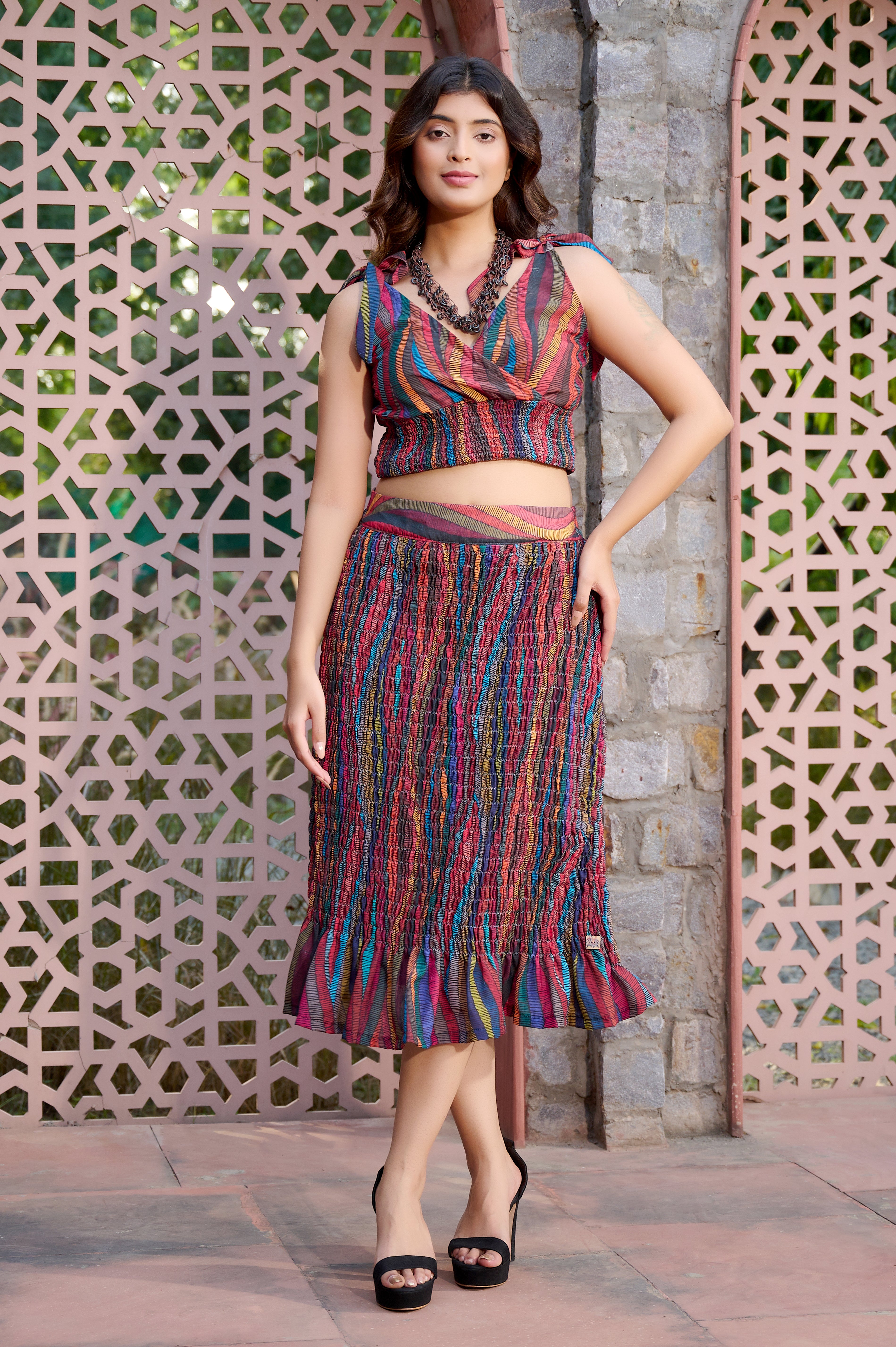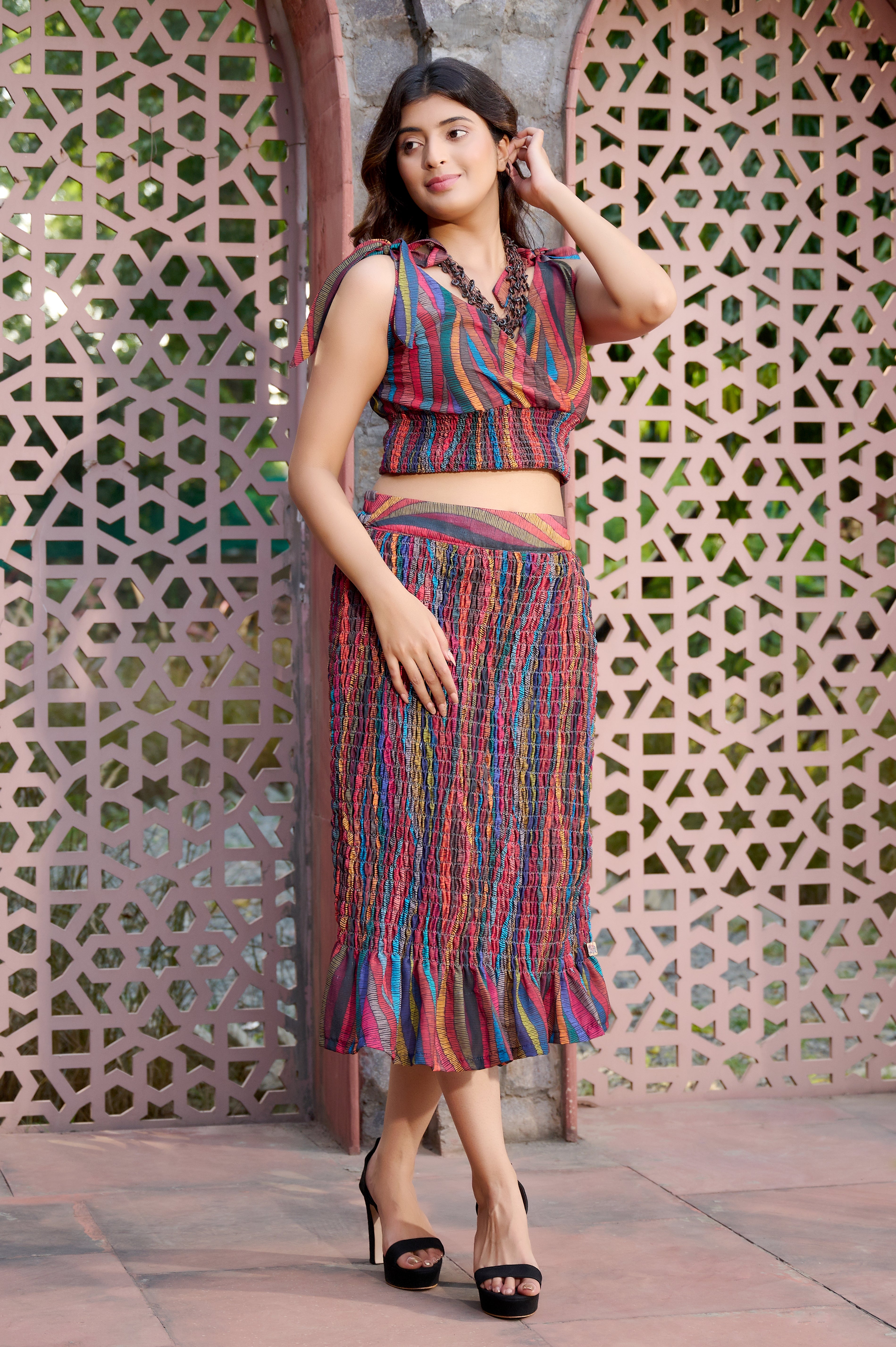 Elasticated Skirt and Top with Blazer Co-ord Set in Cotton Blend fabric