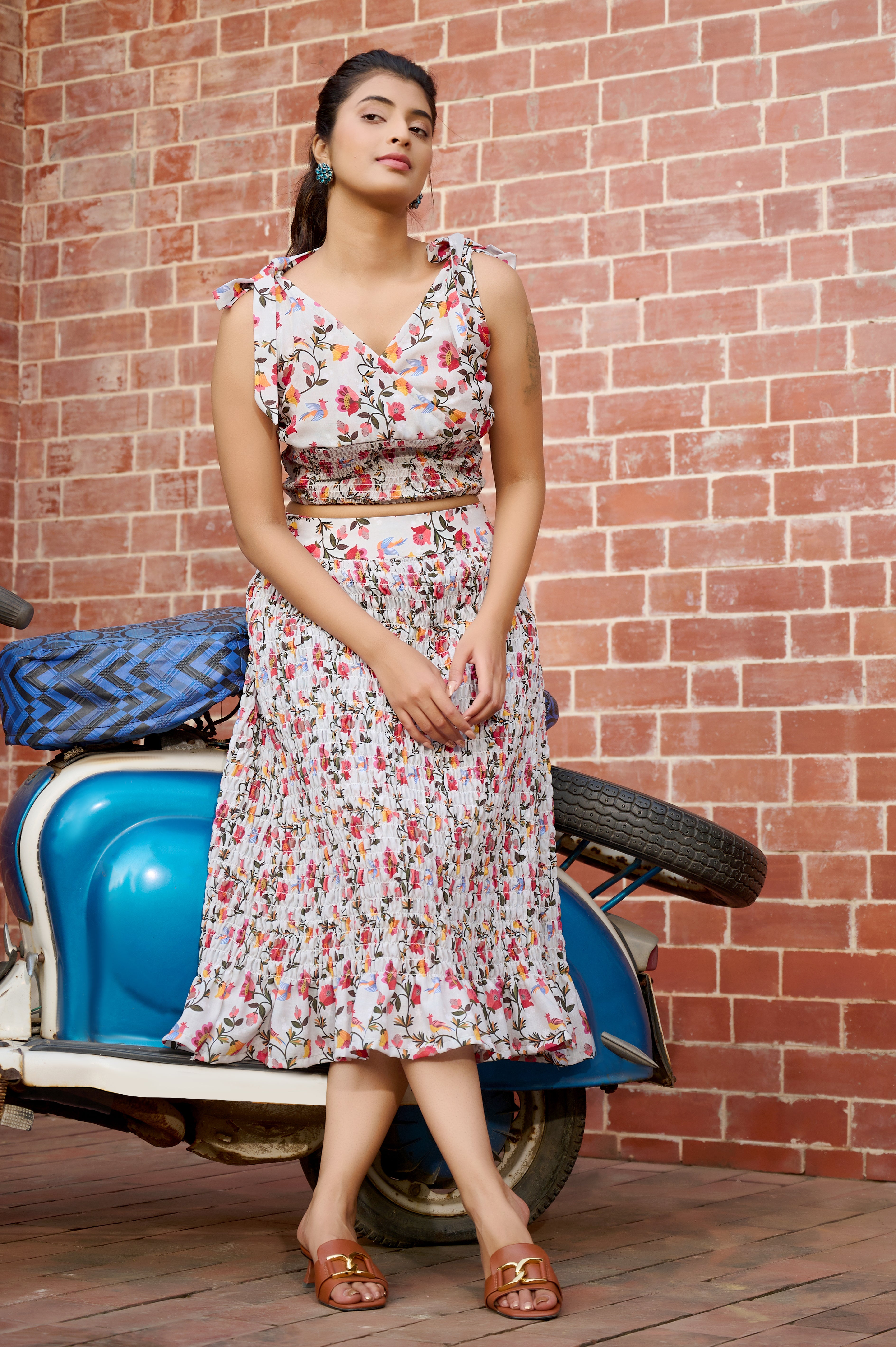 Elasticated Skirt and Top in Cotton Blend Floral Print
