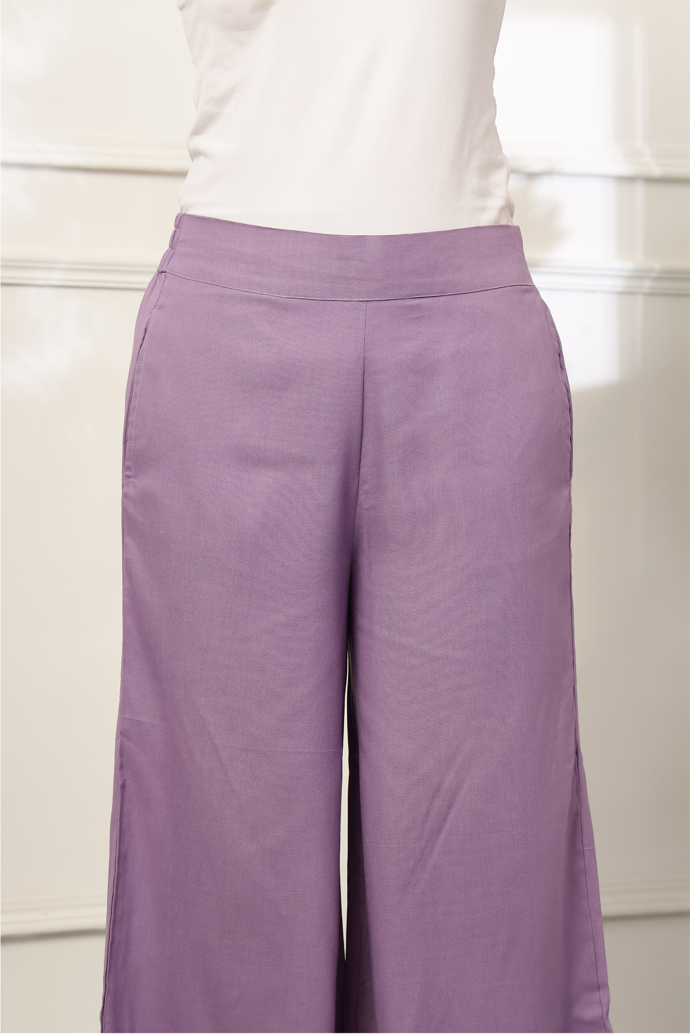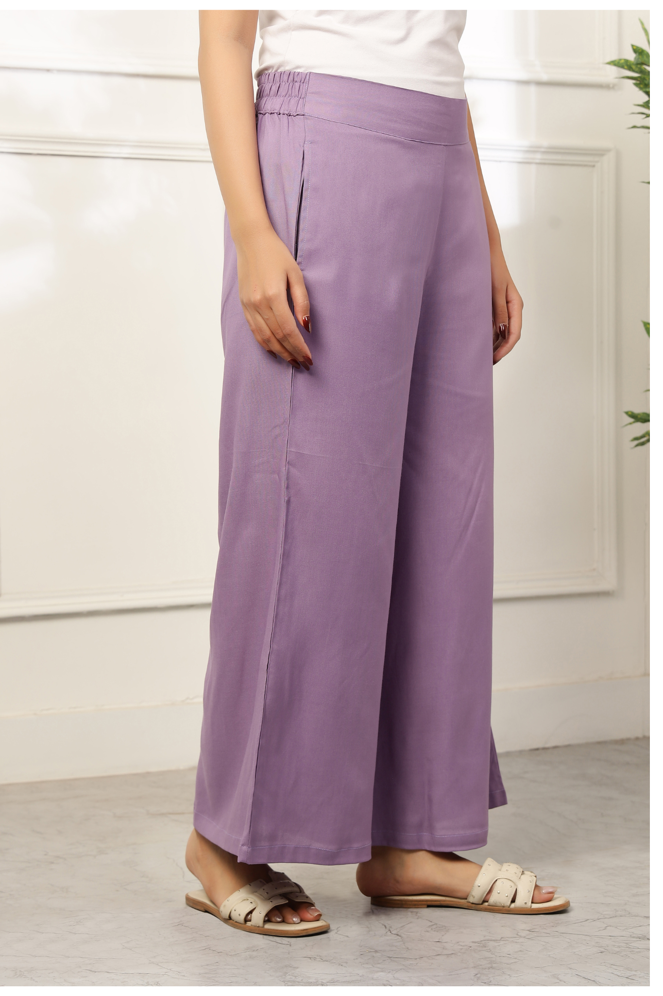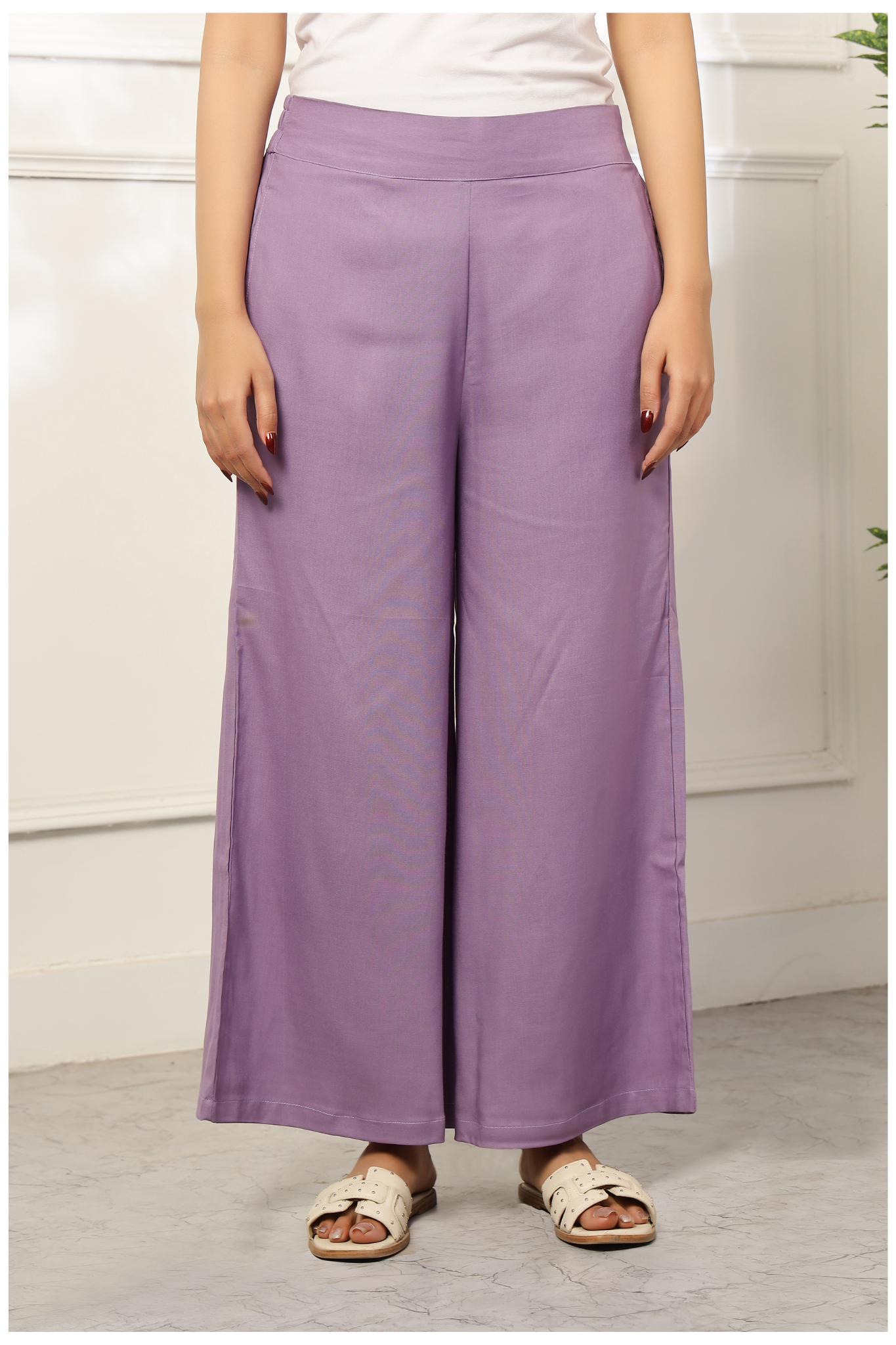 Breezy, breathable, and beautifully tailored — these lavender palazzos are made from soft cotton for all-day comfort. The wide-leg fit pairs effortlessly with kurtas, crop tops, or everyday tees.