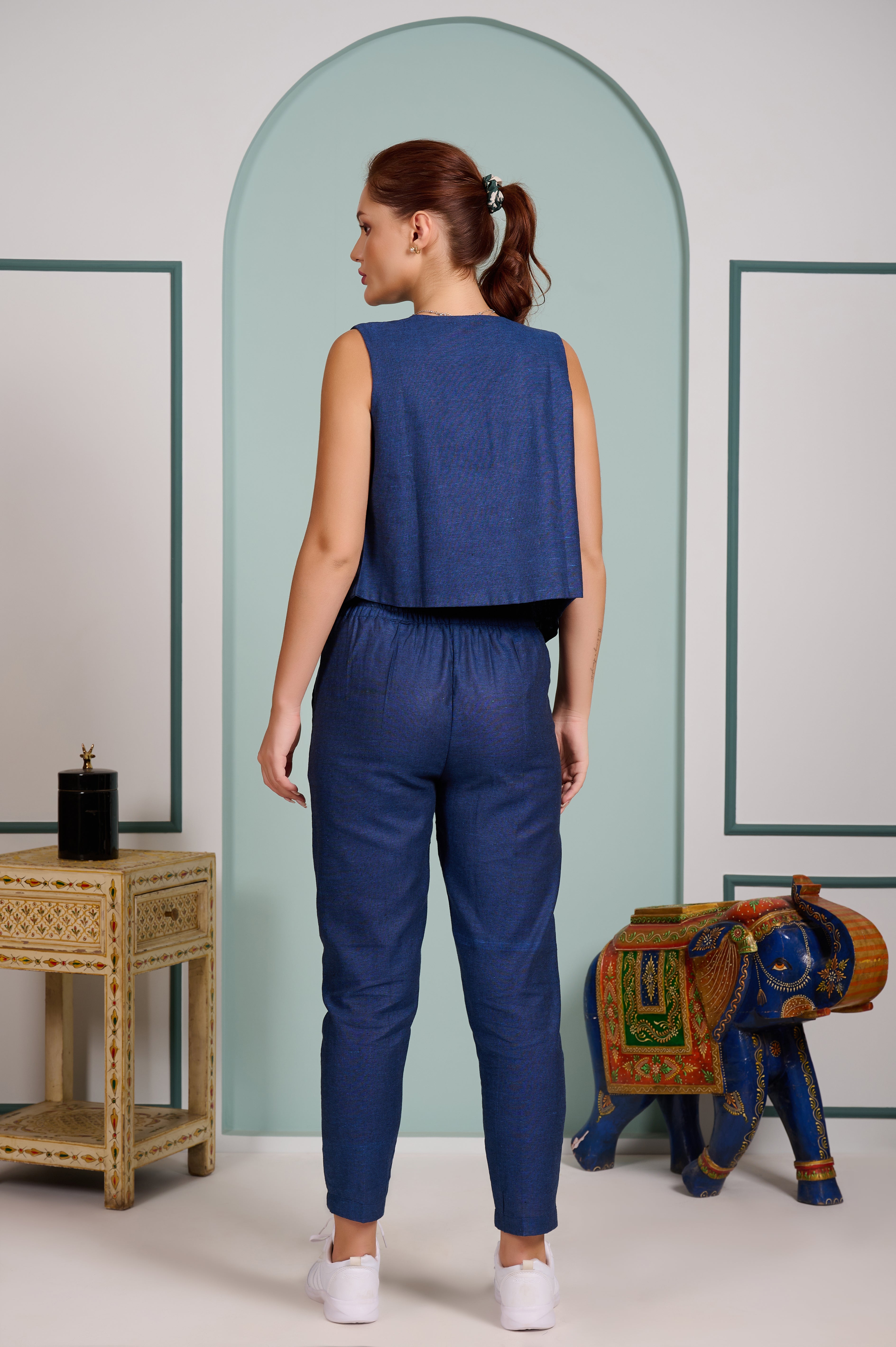 Navy Blue 3 piece cord set Pant with Vest and inner top