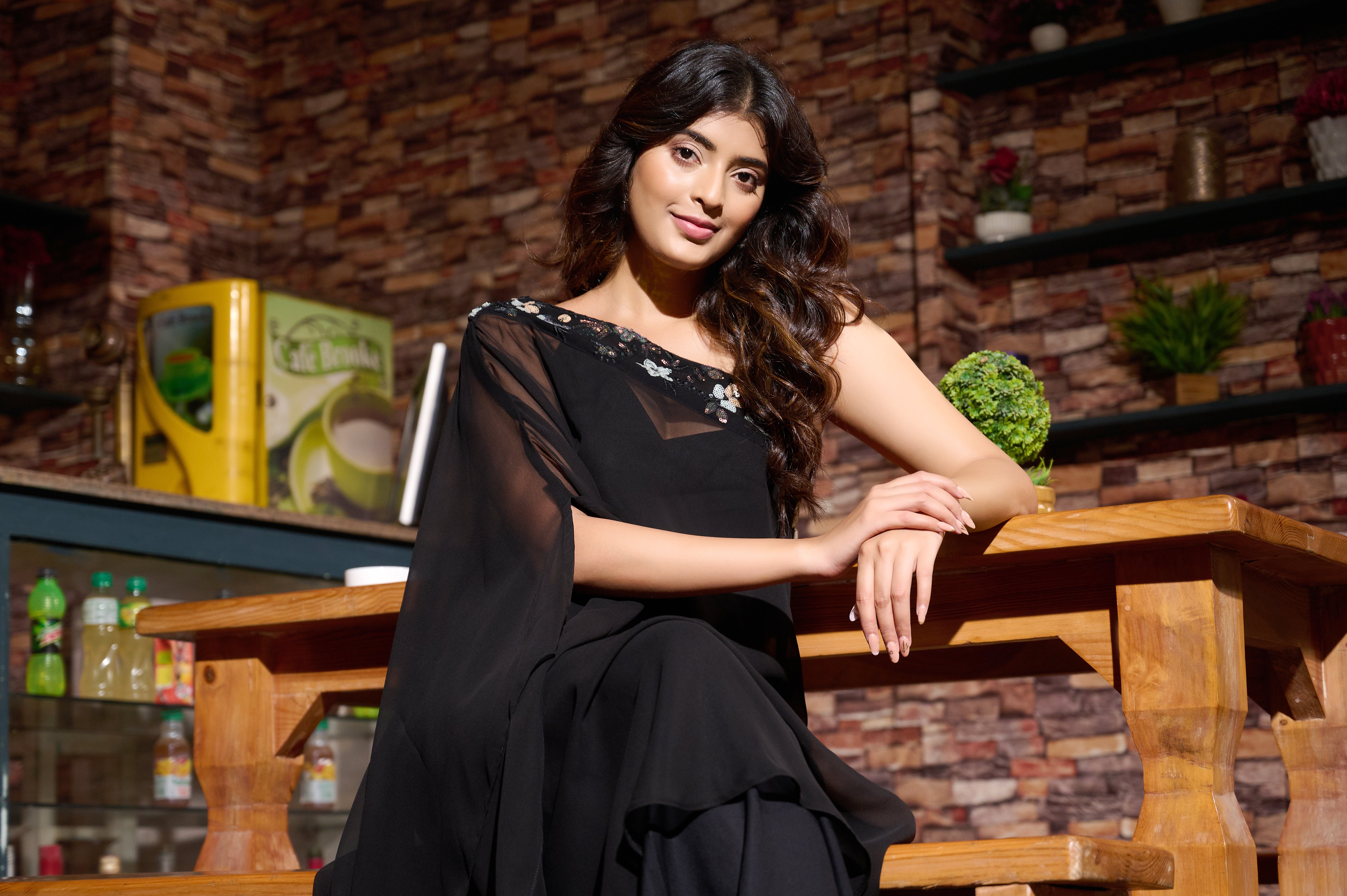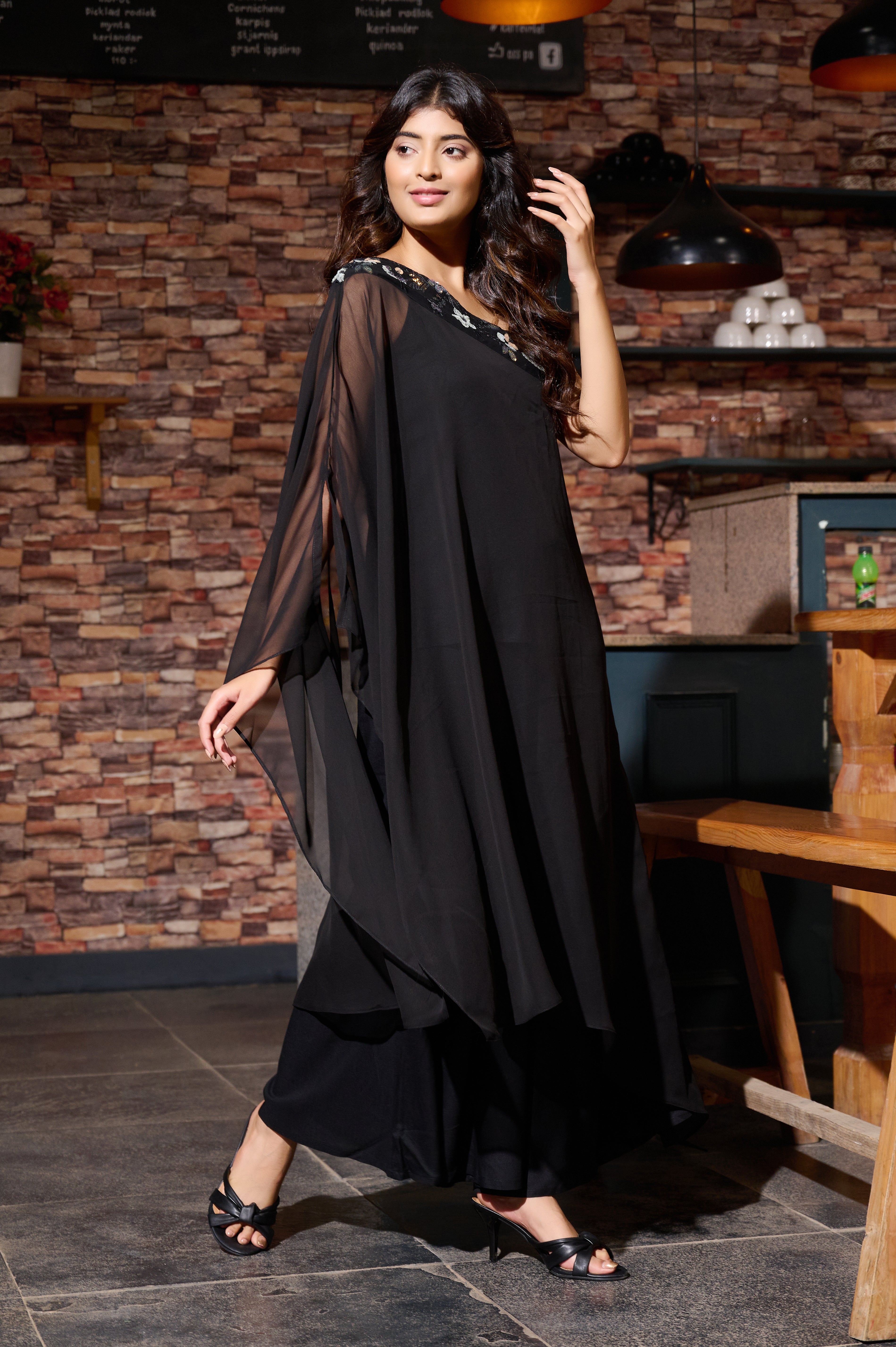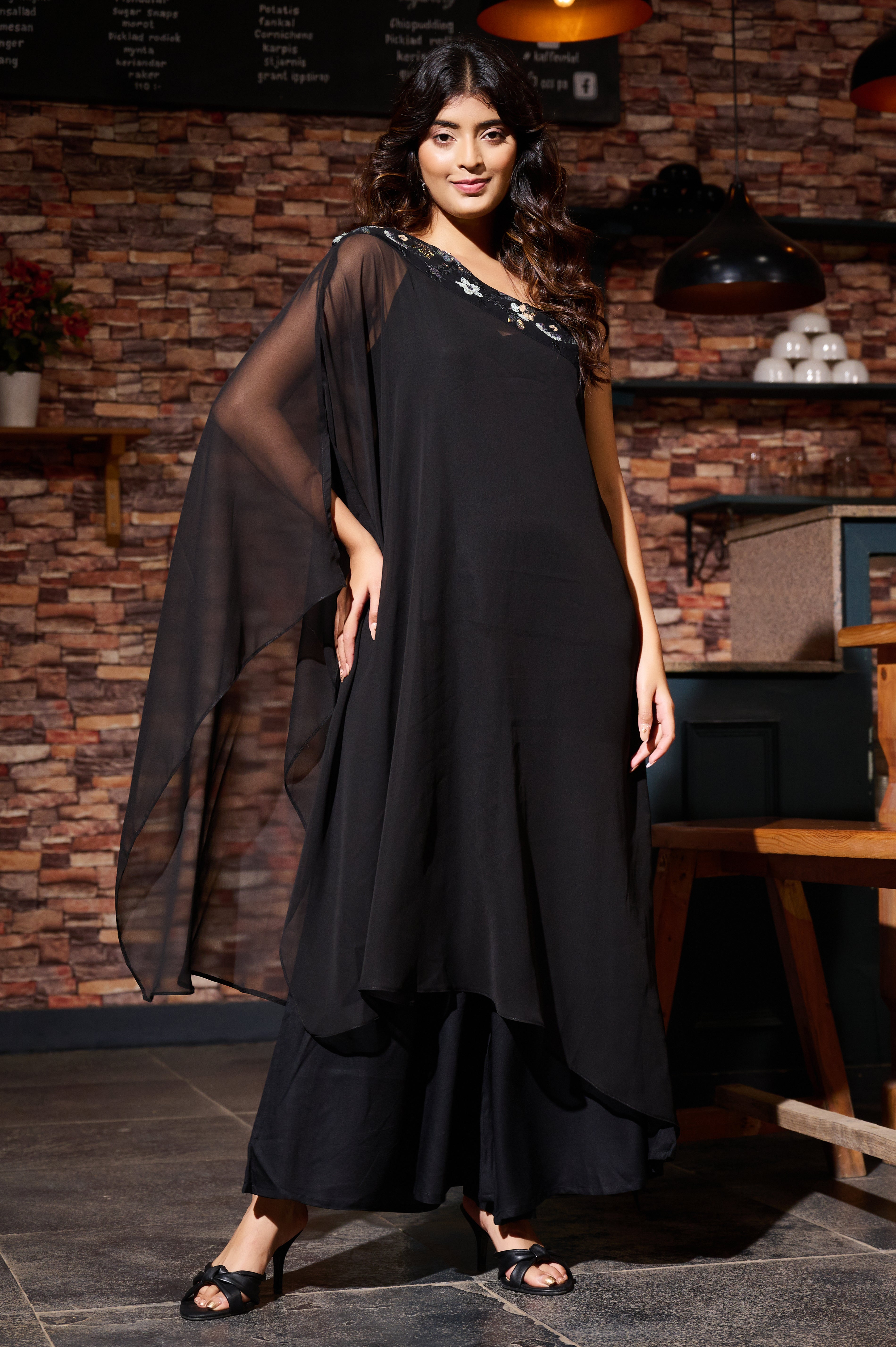 One Shoulder Black Festive Wear 3 piece Coord Set